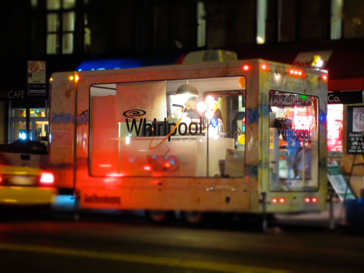 We designed and executed all aspects of an experiential marketing campaign for Whirlpool in partnership with Good Housekeeping. The pop-up event featured Whirlpool’s latest home appliances in a complete kitchen setup within a roaming glass-cube truck wandering NYC.